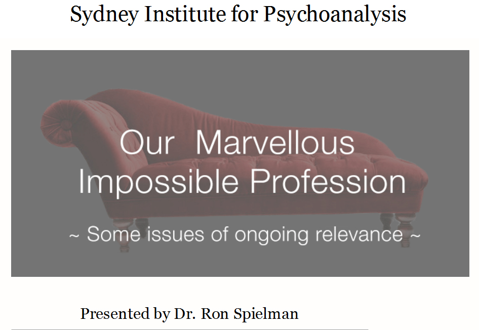 • Our Marvelous Impossible Profession - challenges of being a psychotherapist/psychoanalyst